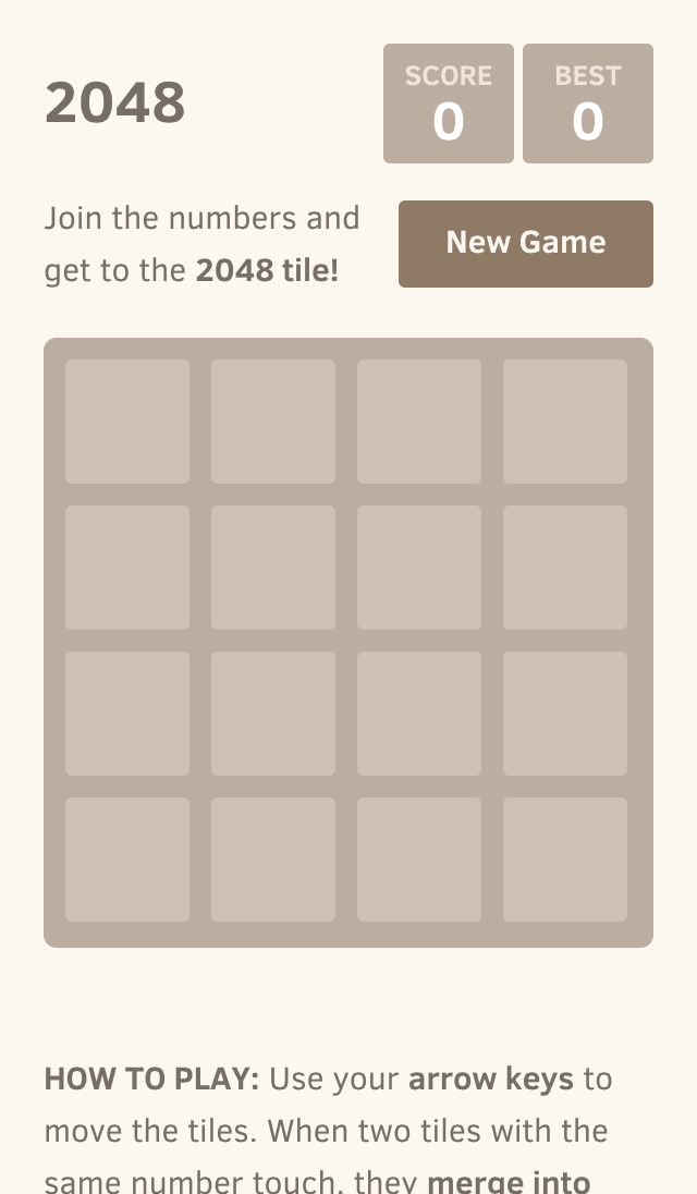 New GameHow to play: Use your arrow keys to move the tiles. When two of the same cupcake tiles touch, they merge into one!